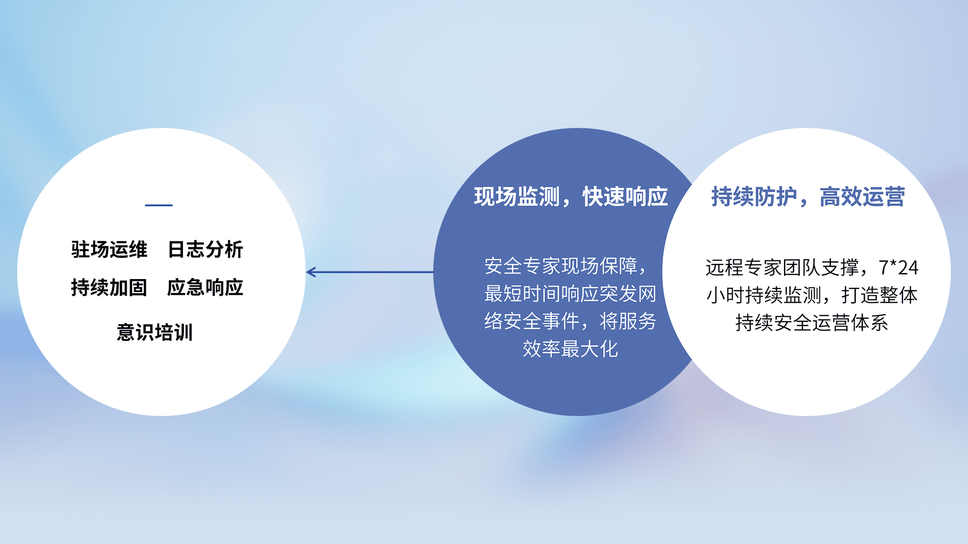 7X24小时持续监测安全事件,保持安全策略有效性,降低资产脆弱性风险,,,,精准拦截黑客攻击,,,,减少被黑客利用的机会,,,第一时间遏制,,,,降低损失。。。